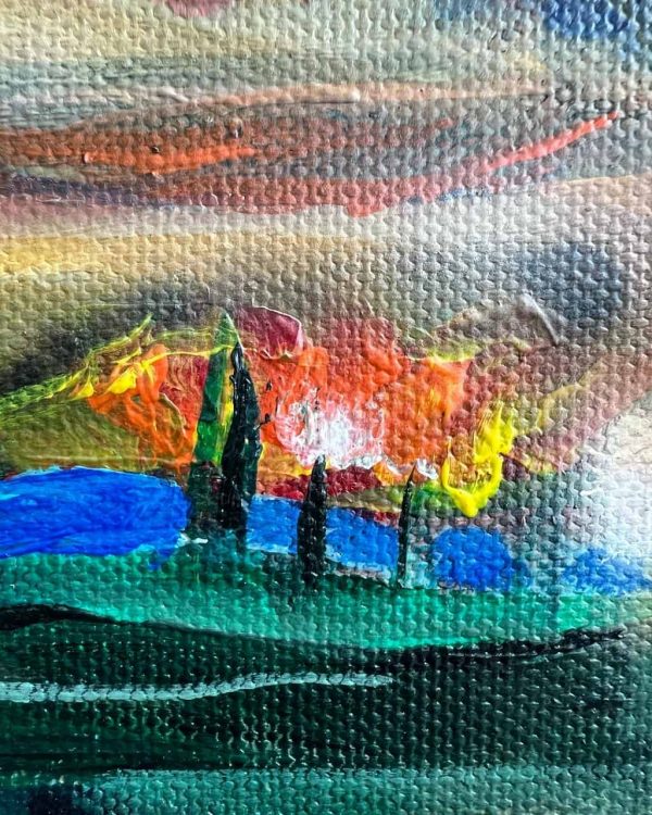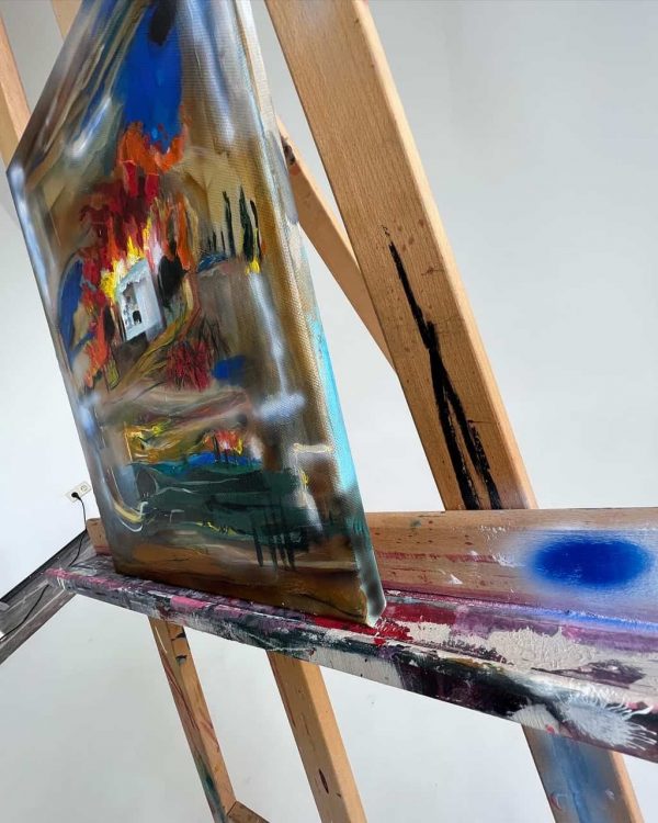 Glaskästen und Zypressen sind wiederkehrende Symbole in meinem Werk. Zypressen stehen oft für Tod und Trauer, können aber auch Unsterblichkeit und die Verbindung zwischen Himmel und Erde symbolisieren. Sie verweisen zudem auf biografische Erinnerungsorte im Mittelmeerraum. Glaskästen repräsentieren die Verletzlichkeit des Lebens und die Unzugänglichkeit von Gefühlen und Erinnerungen. Zusammen können sie die Vergänglichkeit des Lebens, unsere Verbindung zur Natur und die Isolation des Menschen thematisieren oder den Akt des Beobachtens veranschaulichen.