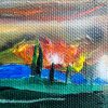 Glass boxes and cypress trees are recurring symbols in my work. Cypress trees often represent death and mourning, but can also symbolize immortality and the connection between heaven and earth. They also reference autobiographical memory places in the Mediterranean region. Glass boxes represent the fragility of life and the inaccessibility of feelings and memories. Together, they can address the transience of life, our connection to nature, and human isolation, or illustrate the act of observing.