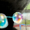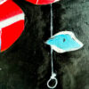 Überall versteckte Hinweise einer Metamorphose der Katze zu einer Spinne als ein Symbol für Intelligenz, Schönheit und Tod/ Ein Wollknäuel, mit dem eben noch die Katze spielte, wird zum Spinnennetz, in dem sich andeutungsweise eine Spinne versteckt. Dies kann als eine Reflexion über die Dualität und Ambivalenz des menschlichen Wesens verstanden werden.Am seidenen Faden haben sich Tautropfen gebildet. In einem spiegelt sich die Stadt der Katzen (Symbol für Derealisationszustände), perspektivisch verzehrt. Das andere Ende des Fadens, wird je nach Betrachtung, Konditionierung und Fantasie zu einem Galgen oder einem Ring.
