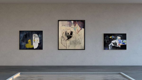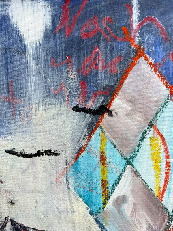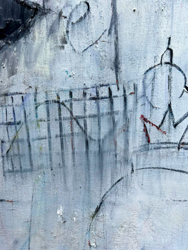 Das Werk “Horoskop” nutzt Abstraktionen mit einem schmalen Kipp Grad zum Figürlichen, die vielfältige Interpretation zulassen.