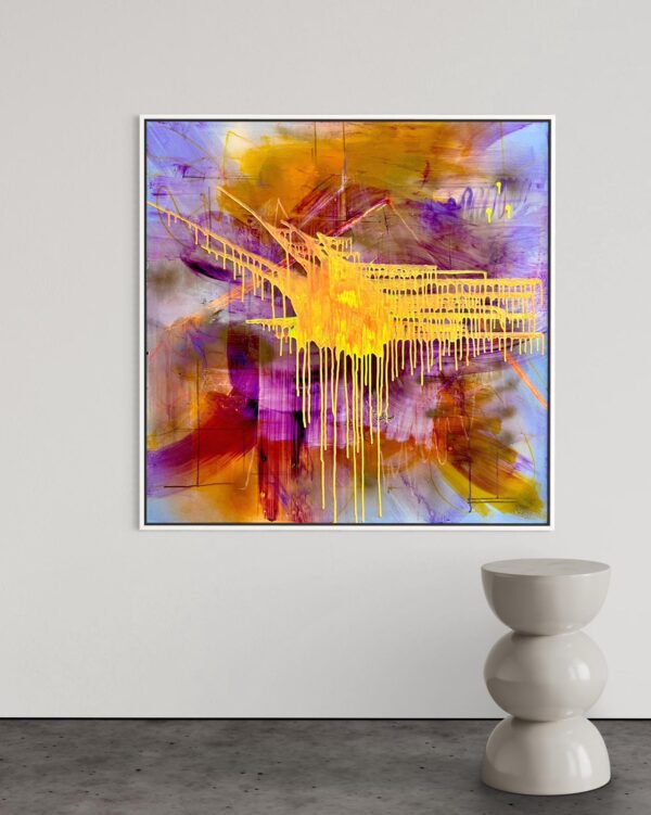 Die Hauptelemente des Kunstwerks sind organische und fließende Formen, die das Herz dekonstruieren und neu interpretieren. Durch die Verwendung von abstrakten Linien und Kurven entsteht eine dynamische Komposition, die die Unvorhersehbarkeit und Komplexität von Emotionen repräsentiert.